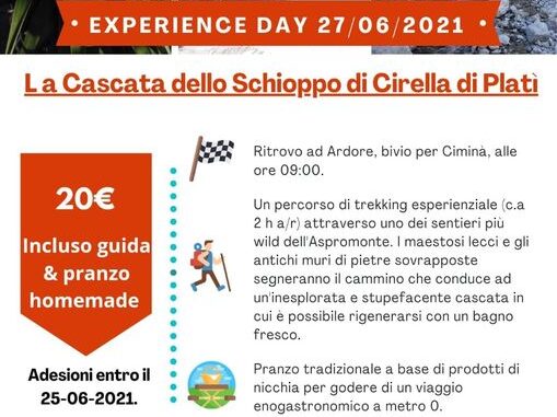 Una nuova escursione organizzata da Un-Explored Calabria. Adesioni entro il 25 giugno. LA CASCATA DELLO SCHIOPPO DI CIRELLA DI PLATÌ. Ritrovo ad Ardore: bivio per Ciminà alle ore 9.